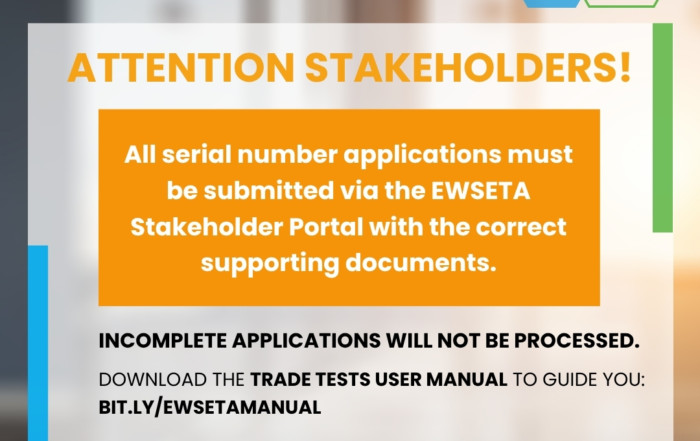 Serial number applications to be submitted via the EWSETA Stakeholder Portal.